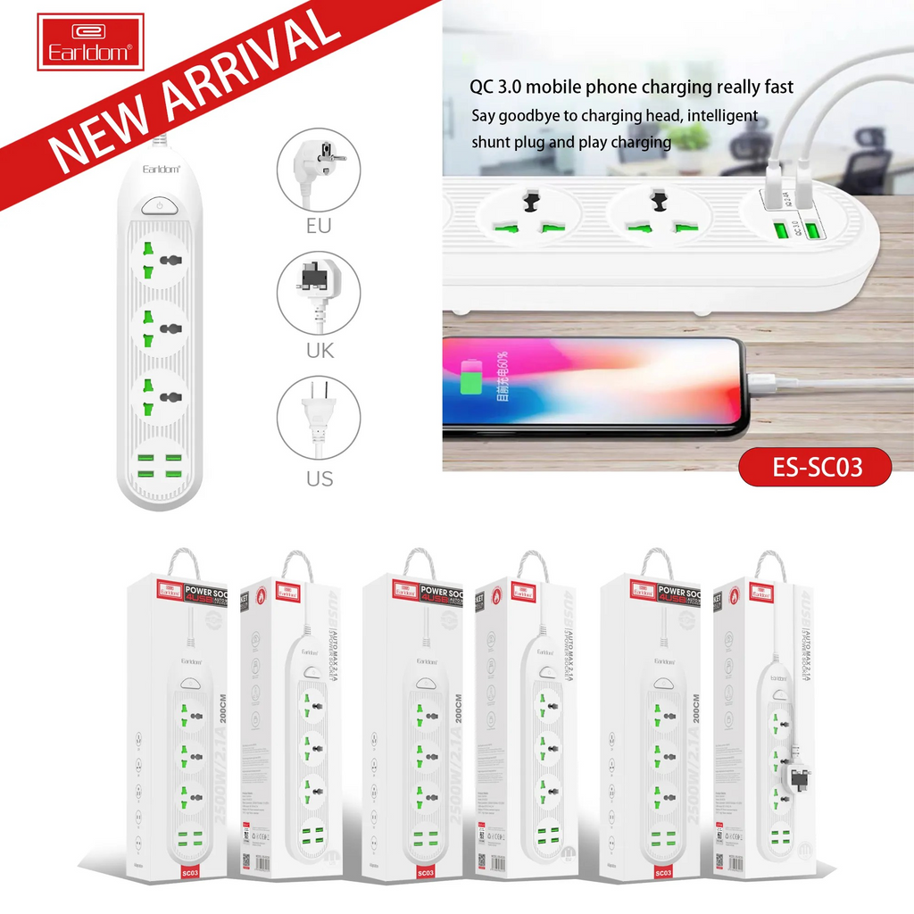 Upgrade your workspace or home setup with this high-performance 2500W Power Socket with UK Plug. Designed for safety, convenience, and versatility, it features multiple standard sockets along with fast USB-A and USB-C charging ports to power all your gadgets at once.