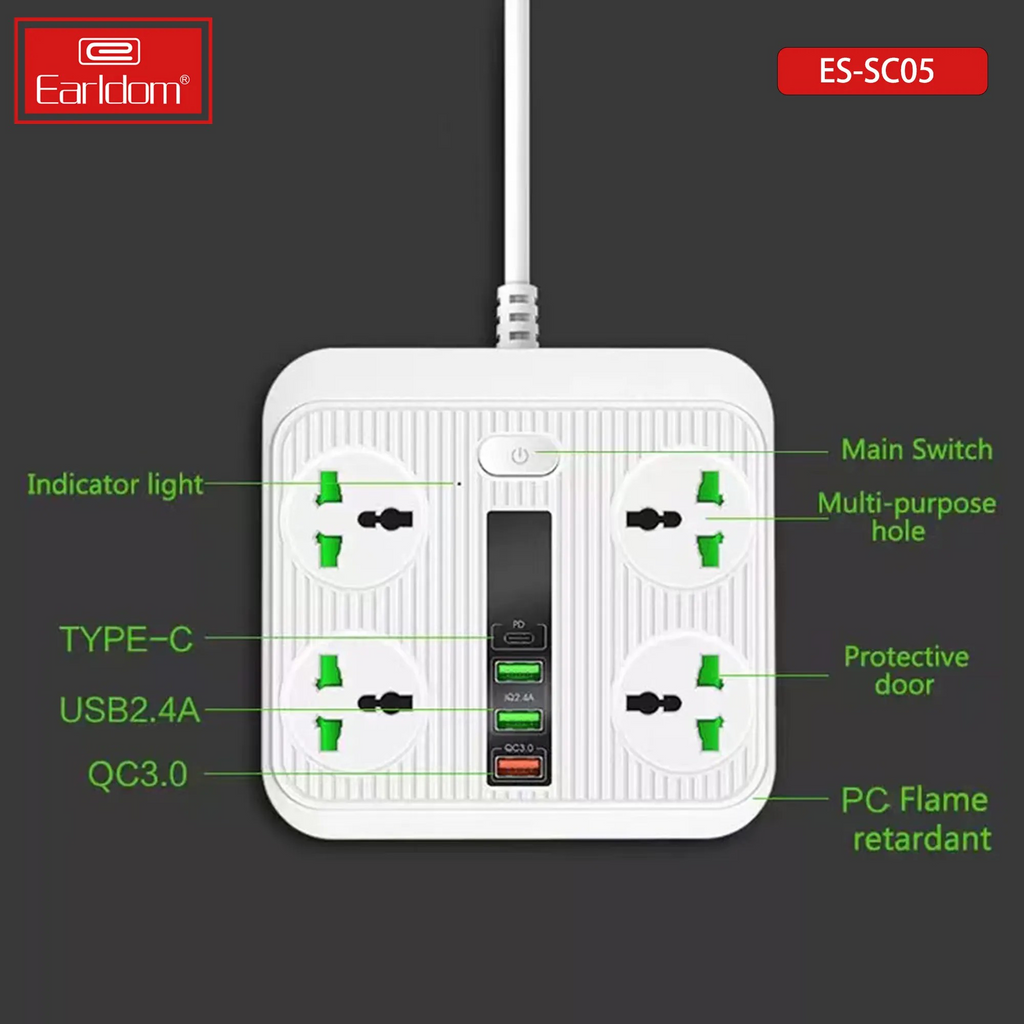 - Multiple AC Sockets: Plug in several devices at once – ideal for desktop, entertainment centres & workstations