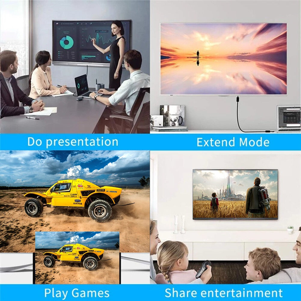 Supports up to 1080p resolution, offering sharp, vibrant visuals for home, office, or classroom use. Compact and plug-and-play, no drivers required.